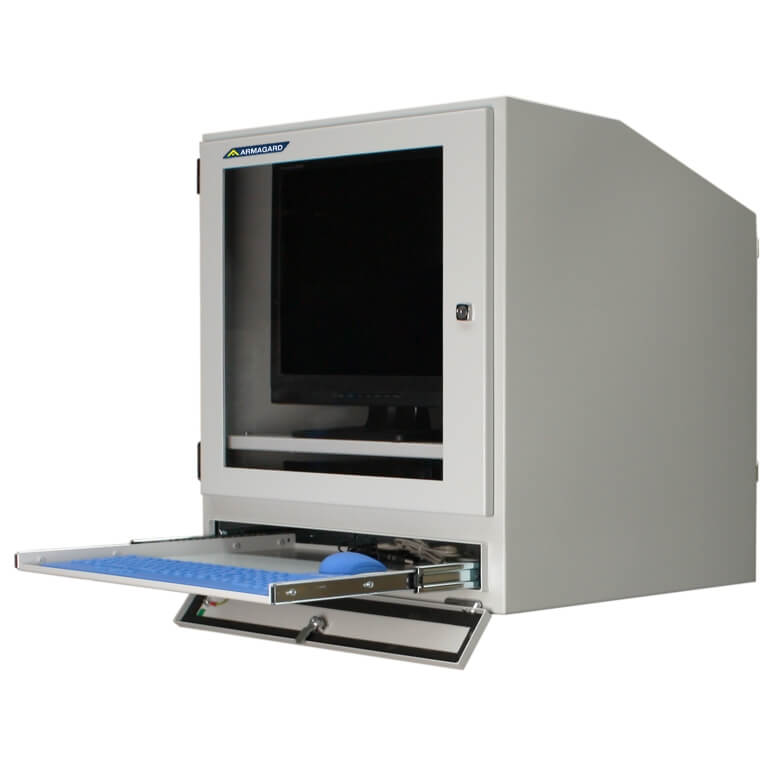 This particular product is designed to protect a wide range of desktop PCs and displays (Mainly CRT and TFT - up to 19 inches), the 800 series computer enclosure is an all-in-one NEMA 4 compact computer enclosure manufactured from powder coated mild steel with a sliding, lock-away keyboard tray.
