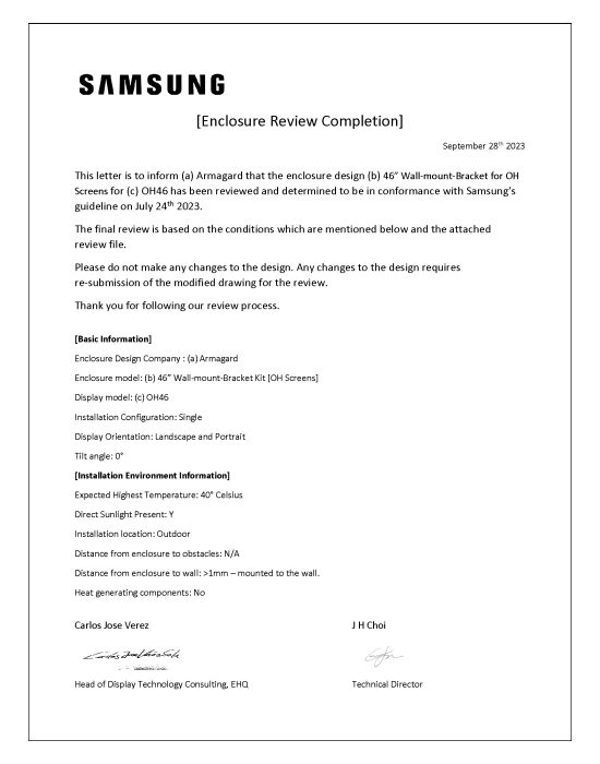 The OH46F and OH55F Wall Mount allows you to display your OH series Samsung screens on any flat wall — ideal for outdoor digital signage that engages customers and boosts revenue.